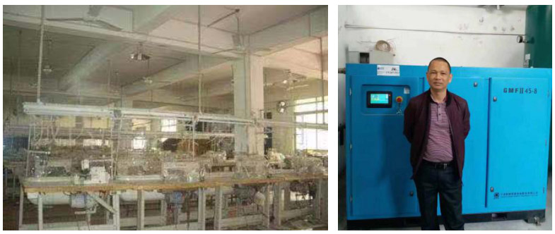 金政公司之前有捷豹螺桿空壓機(jī)55KW二臺15KW空壓機(jī)一臺,由于擴(kuò)大生產(chǎn)用氣波動比較大。造成產(chǎn)品質(zhì)量不夠穩(wěn)定。2016年11月選用了我們公司G系列空壓機(jī)GMFll45兩臺改造后,由于我們的控制系統(tǒng)比其他螺桿空壓機(jī)反應(yīng)快,相同功率產(chǎn)氣量大。成功解決了之前氣波動影響產(chǎn)品質(zhì)量問題。而且能耗也大大降低,節(jié)約了成本,提高了產(chǎn)品質(zhì)量。金政公司給了我們很高的評價(jià)。